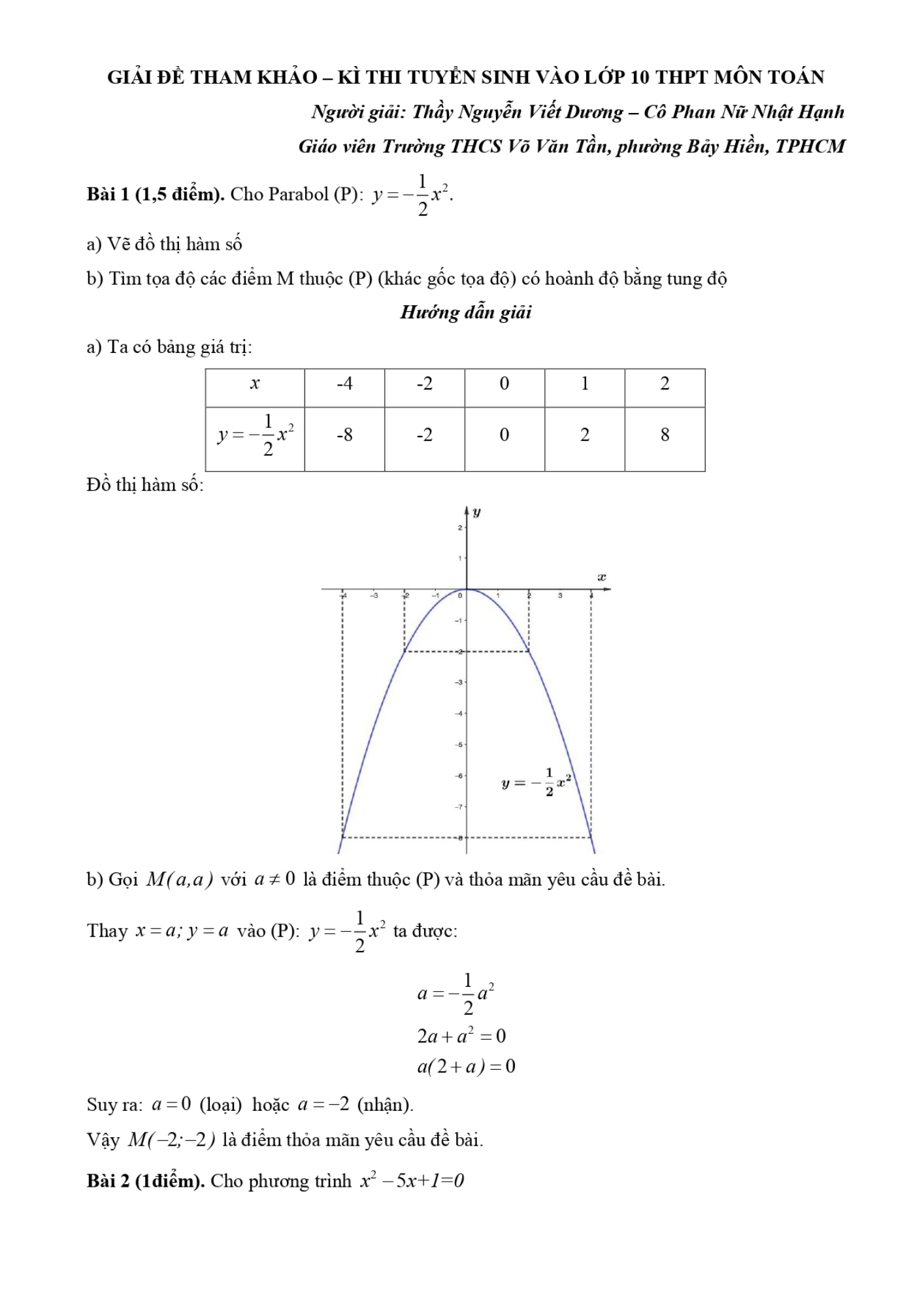 Đáp án đề minh họa tuyển sinh 10 TPHCM năm 2026