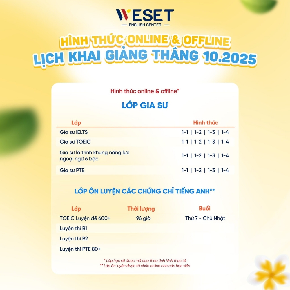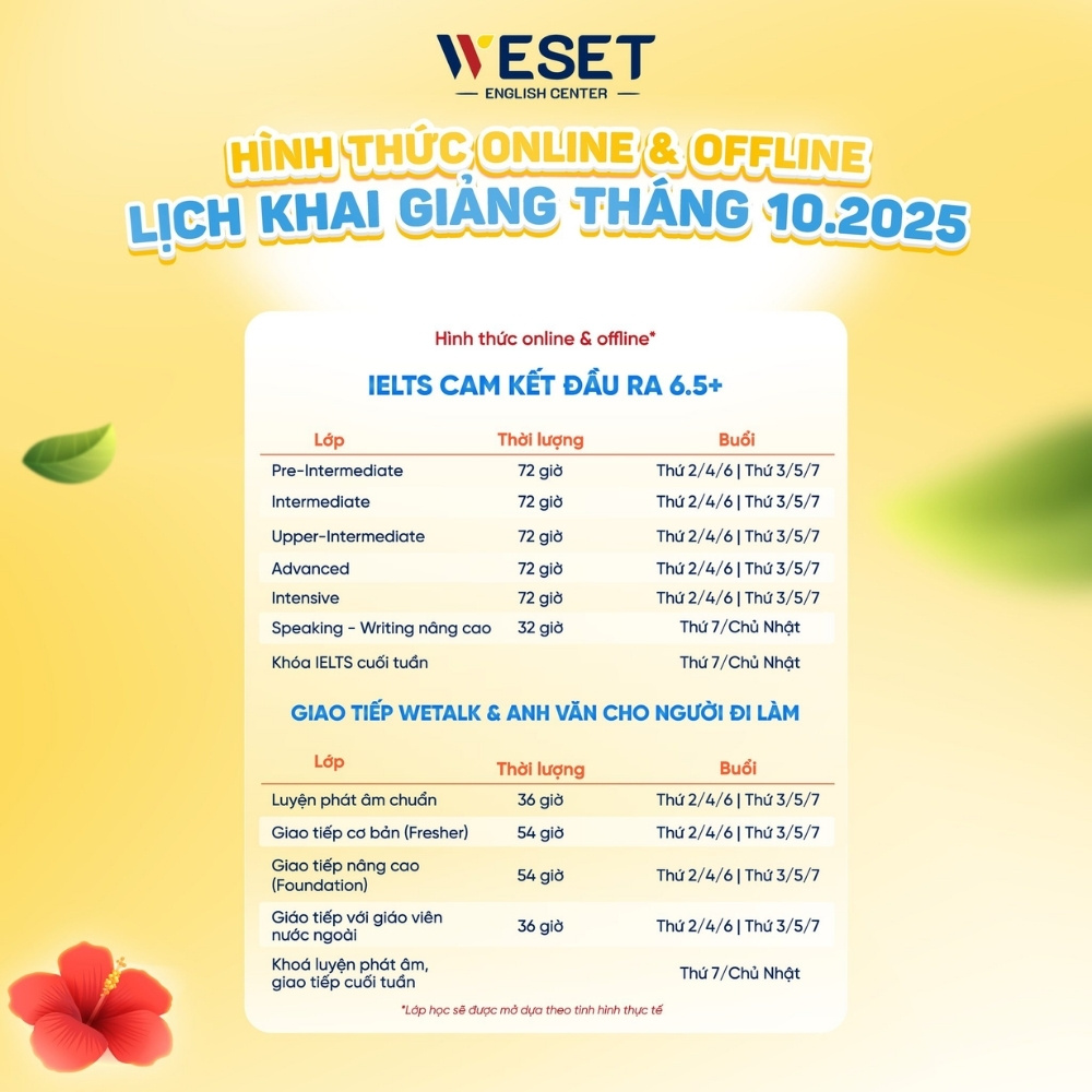 💥 Tháng 10 này, hãy cùng WESET tạo nên một bước ngoặt đáng nhớ. Với hệ thống khóa học toàn diện, được thiết kế khoa học và cá nhân hóa, bạn sẽ dễ dàng đạt mục tiêu chinh phục tiếng Anh.