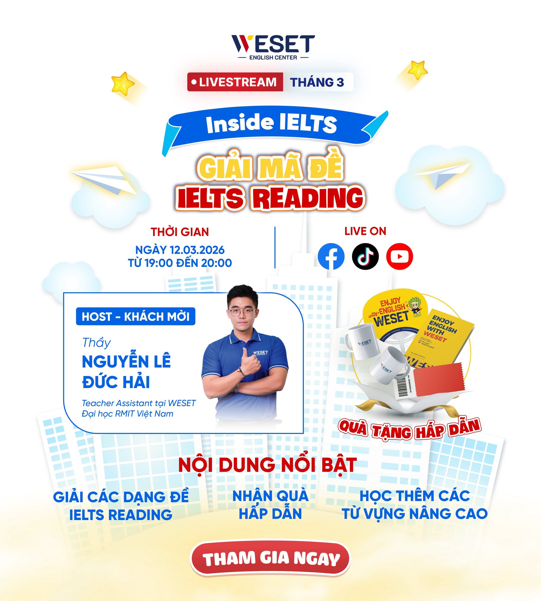 📍 Livestream trên: Facebook • TikTok • YouTube của WESET English Center