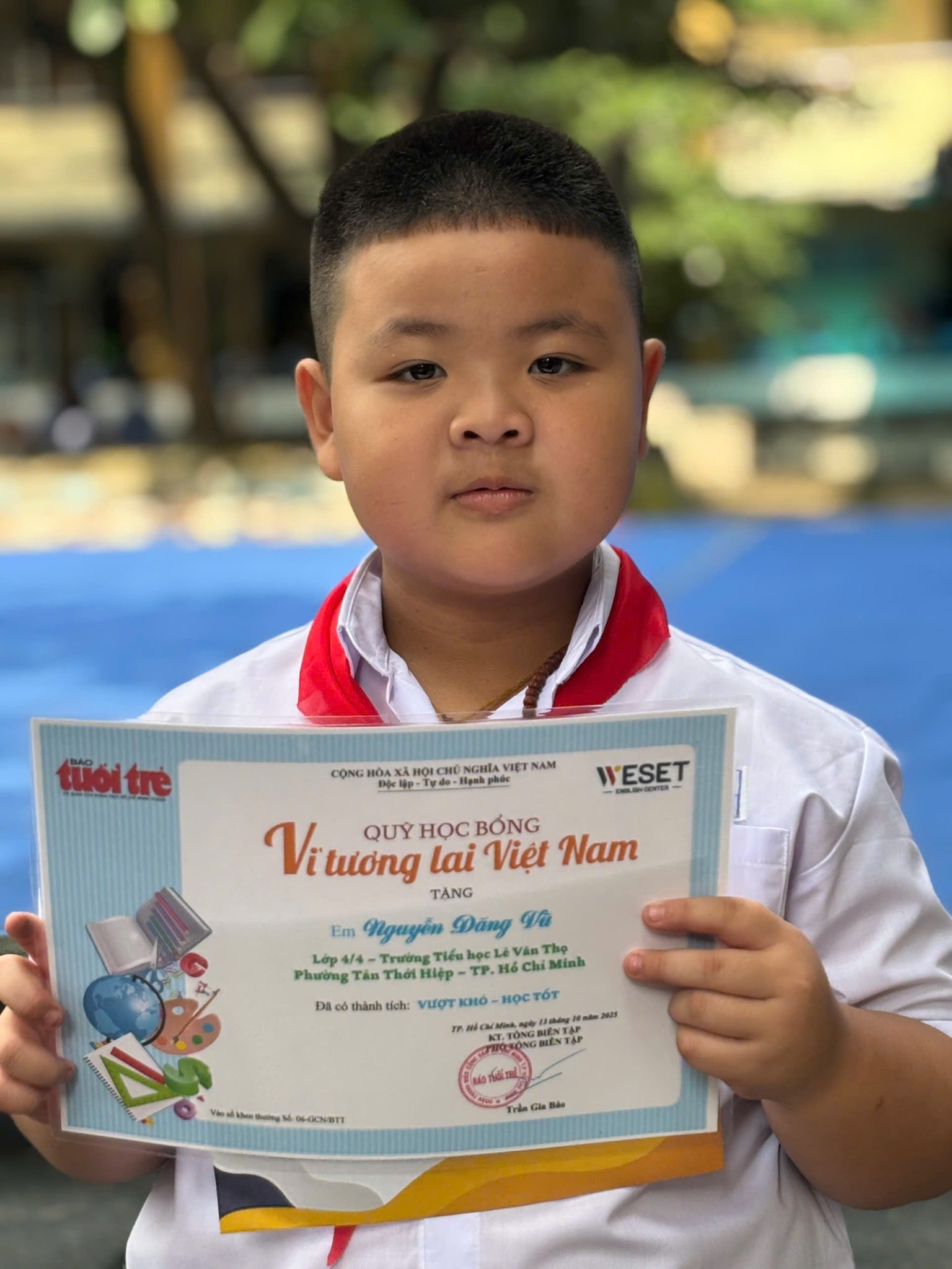 Quỹ Khuyến học WESET đã đến Trường Tiểu học Lê Văn Thọ (phường Tân Thới Hiệp, TP. HCM) để trao tặng 5 suất học bổng, mỗi suất trị giá 1.000.000 đồng, cho 5 em học sinh có hoàn cảnh đặc biệt. Hoạt động này nằm trong chương trình trao học bổng “Vì tương lai Việt Nam” do Quỹ Khuyến học WESET đồng hành cùng Báo Tuổi Trẻ thực hiện.