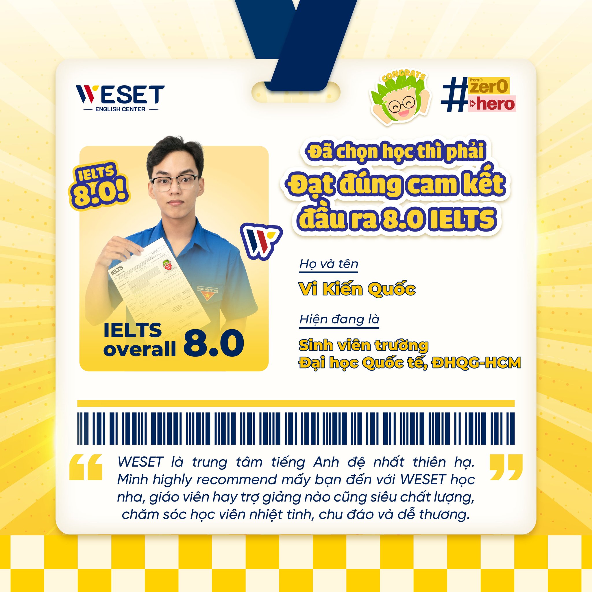 Tại WESET, mỗi học viên đều là một câu chuyện đặc biệt và Vi Kiến Quốc chính là minh chứng tuyệt vời cho sự nỗ lực bền bỉ và tinh thần học tập nghiêm túc.