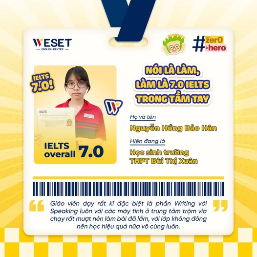 WESET English Center – trung tâm luyện thi tiếng Anh cam kết đầu ra tại TP HCM. Với nhiều năm kinh nghiệm trong lĩnh vực đào tạo tiếng Anh và luyện thi IELTS, WESET tự hào là trung tâm luyện thi IELTS, luyện thi TOEIC chuyên sâu uy tín giúp hàng ngàn học viên đạt được ước mơ du học, định cư và phát triển sự nghiệp