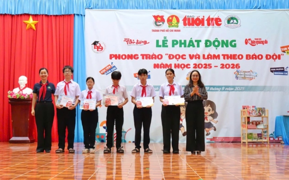 Chị Trân cho biết năm học 2025-2026 là năm học đặc biệt, vì vậy báo Đội sẽ tiếp tục được đầu tư đa dạng hơn, giúp học sinh có thêm nhiều kiến thức và trải nghiệm bổ ích. Đồng thời, chị kêu gọi mỗi đội viên hãy lan tỏa phong trào bằng những hành động nhỏ như đọc báo 15 phút mỗi ngày, xây dựng tủ sách măng non và tham gia các câu lạc bộ như Phóng viên nhí hay Phát thanh măng non.