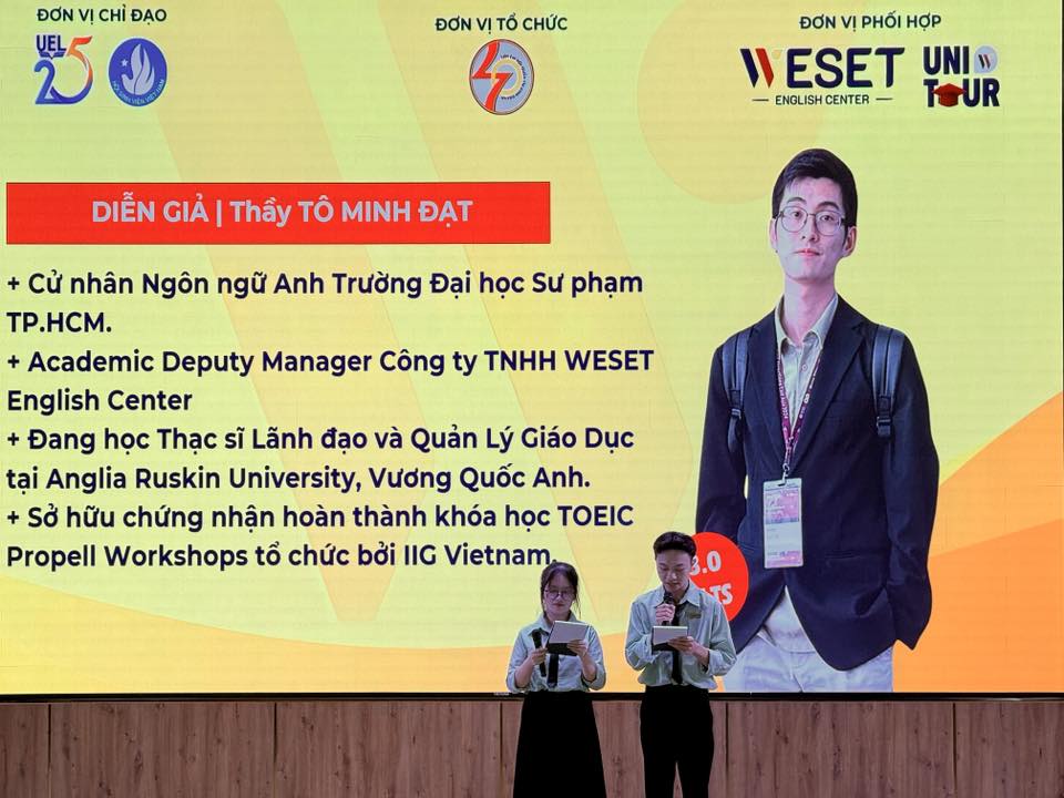 Tại chương trình, thầy Tô Minh Đạt đã chia sẻ những góc nhìn thực tế về việc học tiếng Anh trong thời đại mới, khi ngoại ngữ không chỉ phục vụ thi cử mà còn là công cụ để giao tiếp, học tập và làm việc trong môi trường quốc tế. Thầy nhấn mạnh tầm quan trọng của việc xác định mục tiêu học rõ ràng, hiểu mình học tiếng Anh để làm gì, từ đó lựa chọn phương pháp phù hợp thay vì học dàn trải và chạy theo xu hướng.