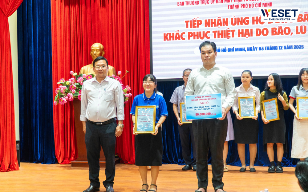 Chiều nay, WESET vinh dự đồng hành cùng Ủy ban Mặt trận Tổ quốc TP.HCM trong buổi lễ tiếp nhận ủng hộ đồng bào khắc phục thiệt hại do bão, lũ gây ra. Với trọn niềm yêu thương hướng về miền Trung, WESET đã ủng hộ 50.000.000đ để hỗ trợ người dân chịu ảnh hưởng nặng nề bởi thiên tai.