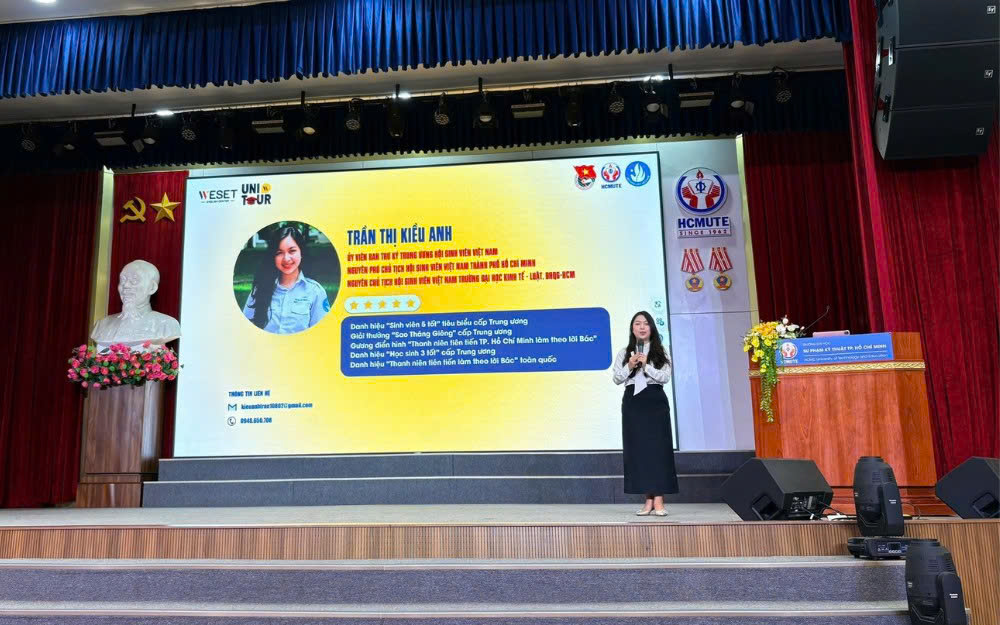 On the morning of Wednesday, December 24, 2025, a vibrant and energetic atmosphere filled the hall of Ho Chi Minh City University of Technology and Education (HCMUTE). WESET, in collaboration with the University, organized a special seminar: “Embracing Integration – Confidently Conquering the 5-Good Student Title.”