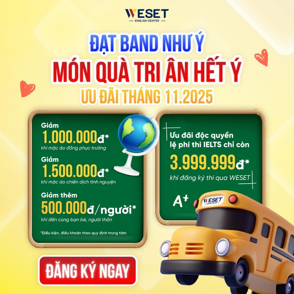 Tháng 11 này, WESET dành tặng bạn loạt ưu đãi học tập siêu hời vừa “nâng trình” học tiếng Anh vừa “nâng cảm xúc” trong mùa 20/11 đầy yêu thương💛