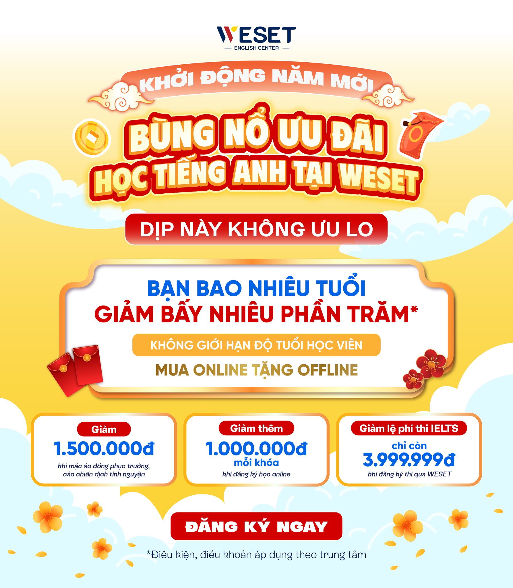 2026 đã sắp “mở màn” rồi, cùng WESET đặt mục tiêu tiếng Anh, chăm học từ đầu năm để cuối năm không phải tiếc nuối vì lười nữa. WESET tặng bạn loạt những ưu đãi đặc biệt để hành trình học tập năm 2026 thêm trọn vẹn.